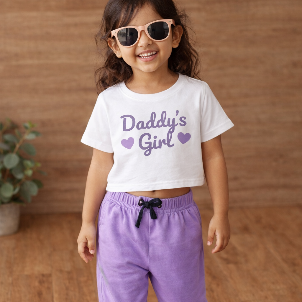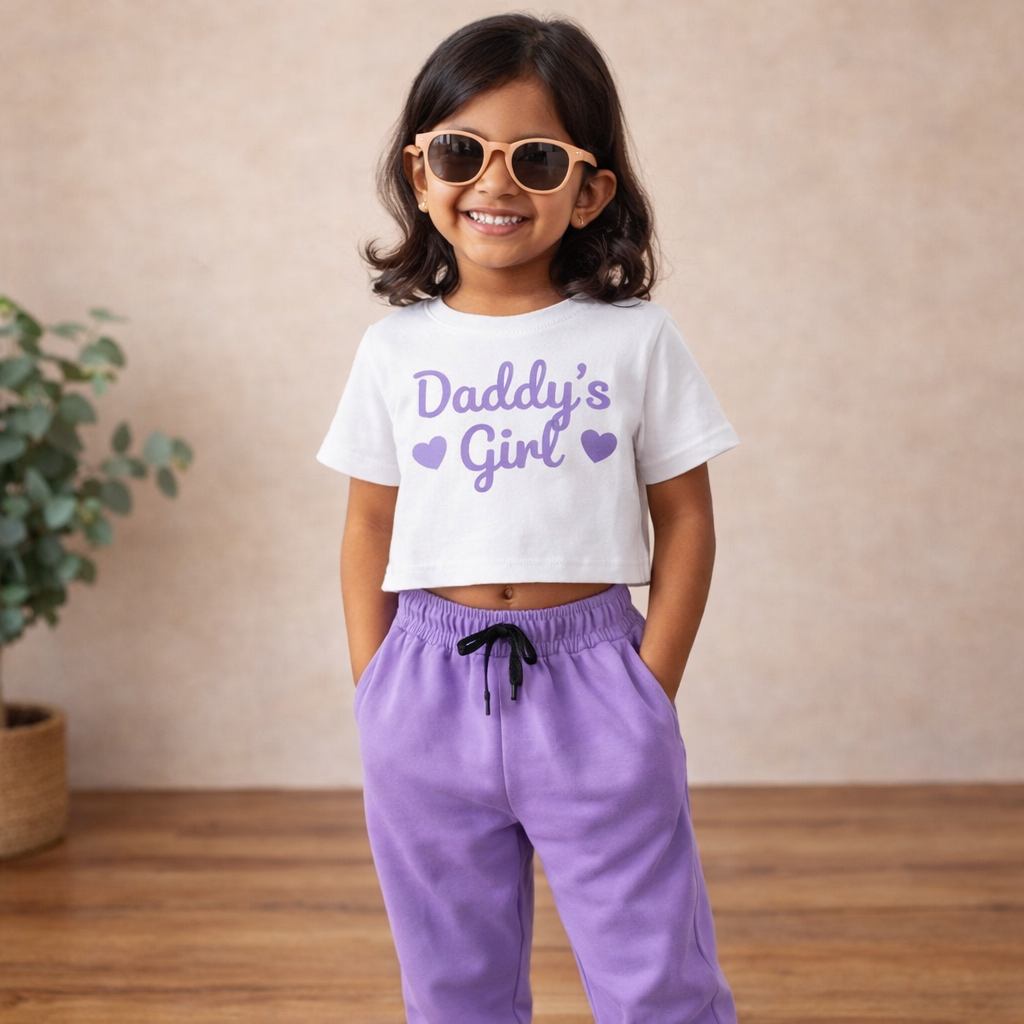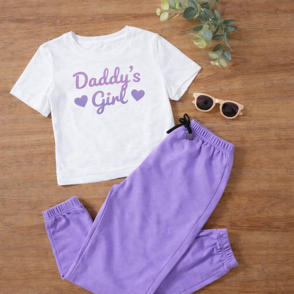 Cute Printed Design – “Daddy’s Girl” text print with heart graphics adds a charming and playful touch to the outfit.