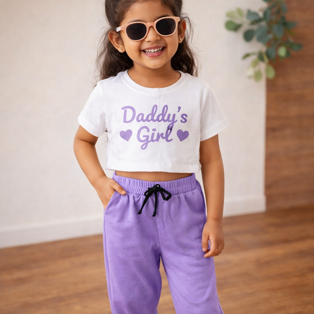 DADNI FASHION Girls “Daddy’s Girl” Printed Co-ord Set – Stylish T-Shirt & Jogger Pants Outfit for Kids